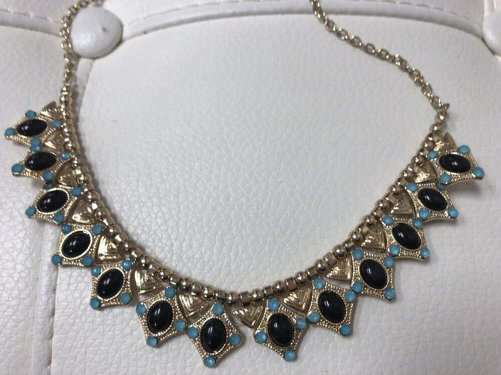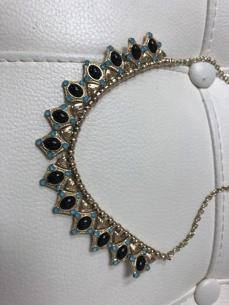 Green gold tone exotic gold hardware vintage necklace