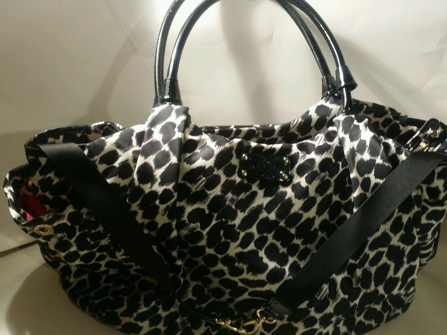 Kate Spade Black & White patent Leather Canvas Tote & Baby Diaper Bag!