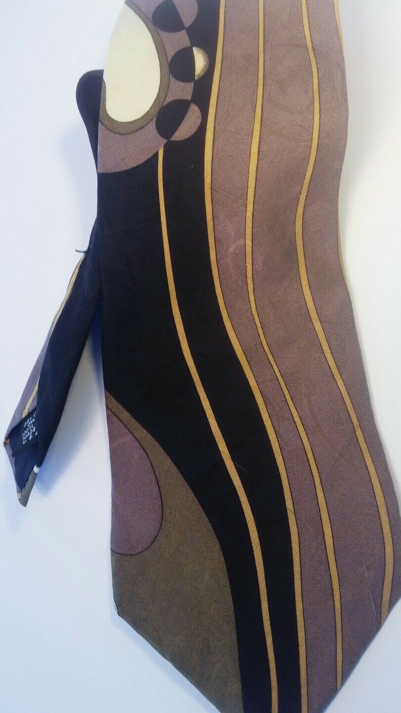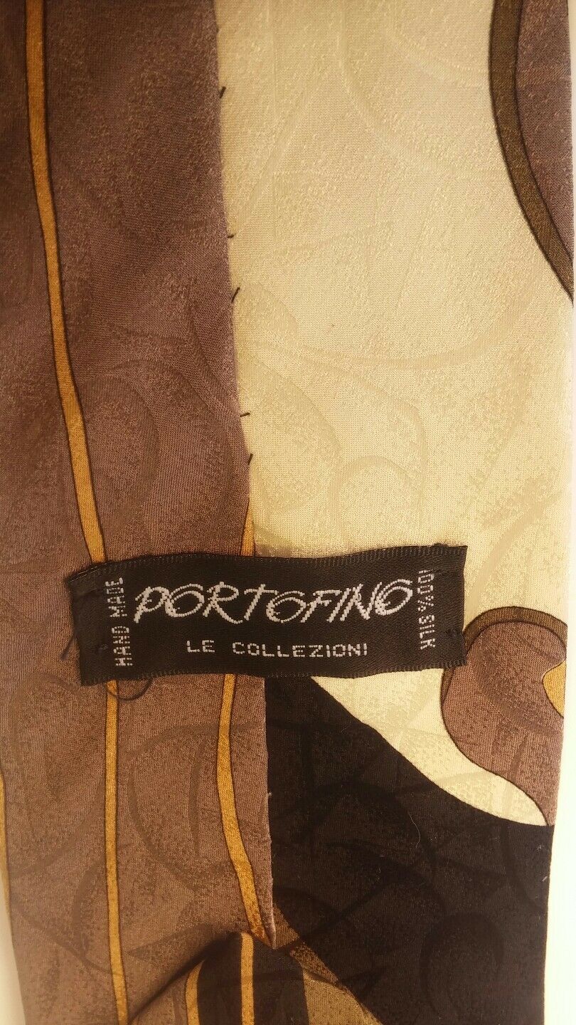 MEN NECK TIES 100% SILK PORTOFINO LE COLLECTION STONE brown black flowery