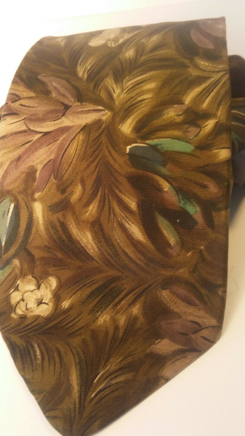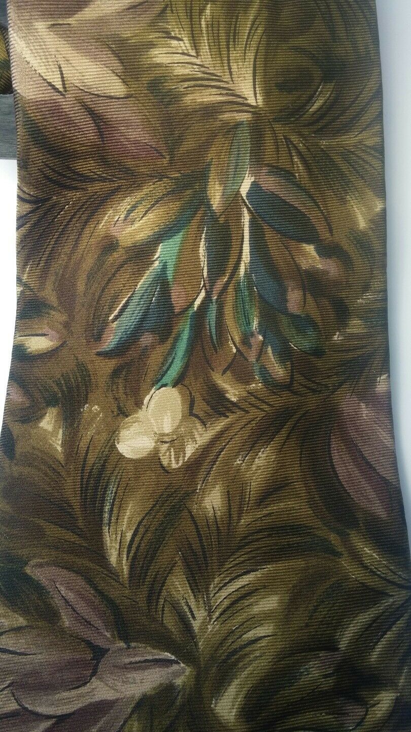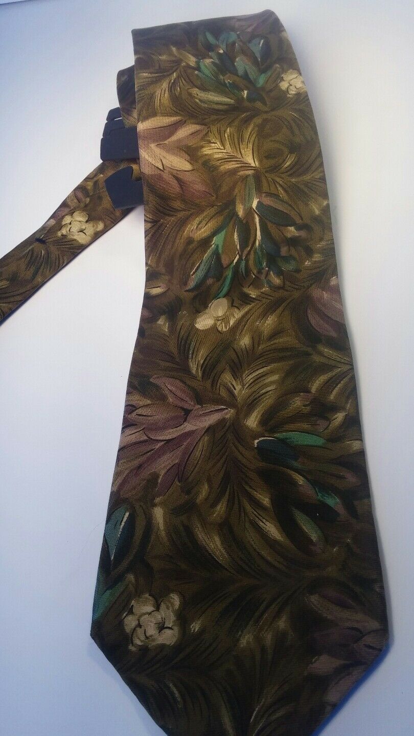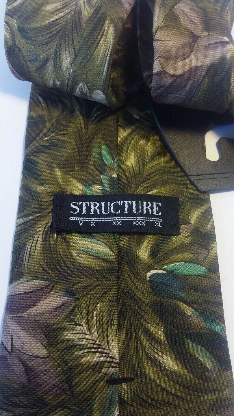 MEN NECK TIES 100% SILK structure STONE green black flowery