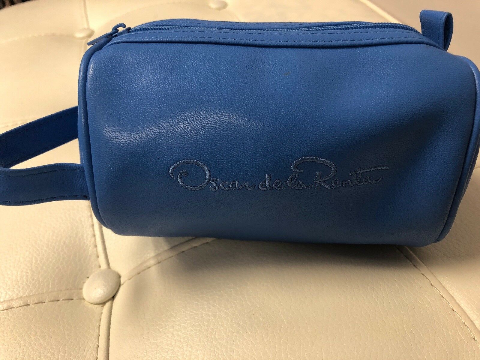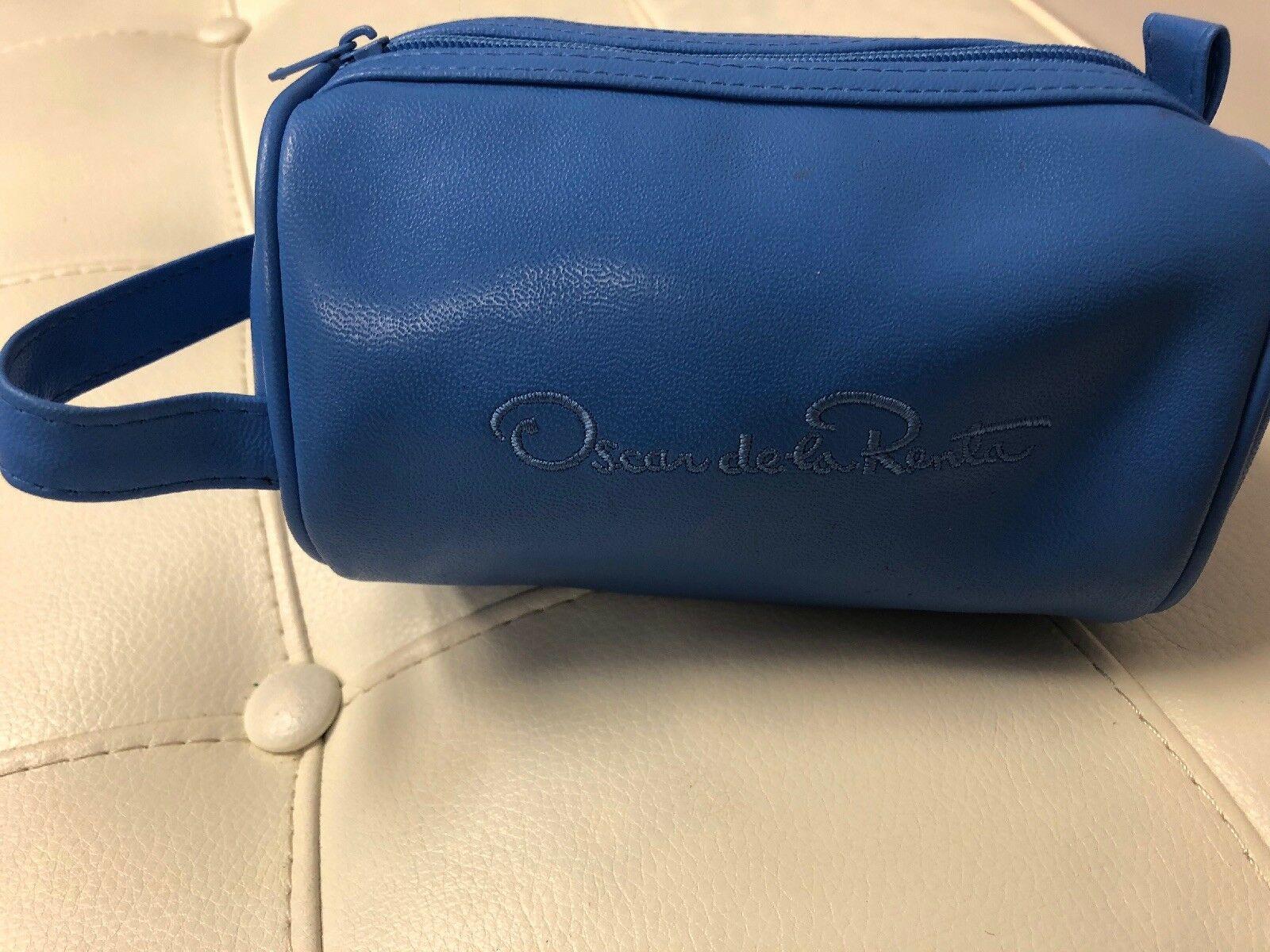 OSCAR DE LA RENTA BLUE BARREL COSMETIC CASE BAG WOMEN'S