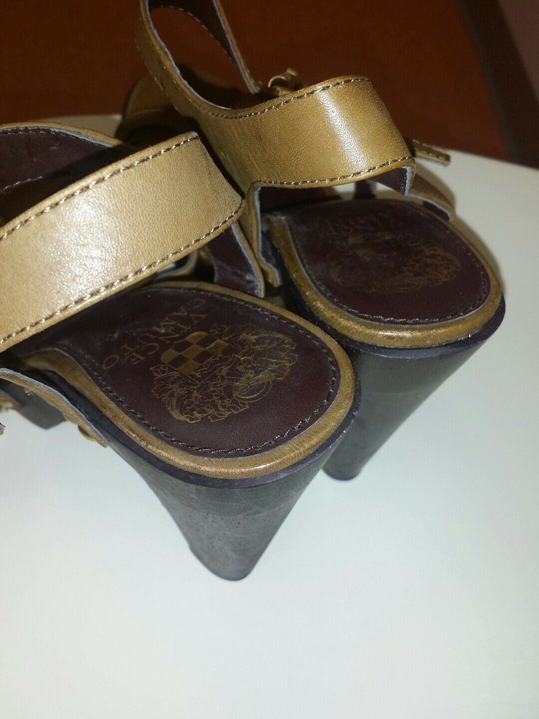 Vince Camuto "Catey" Army Green Vachetta Leather Heels Size 7 M Very Nice $110