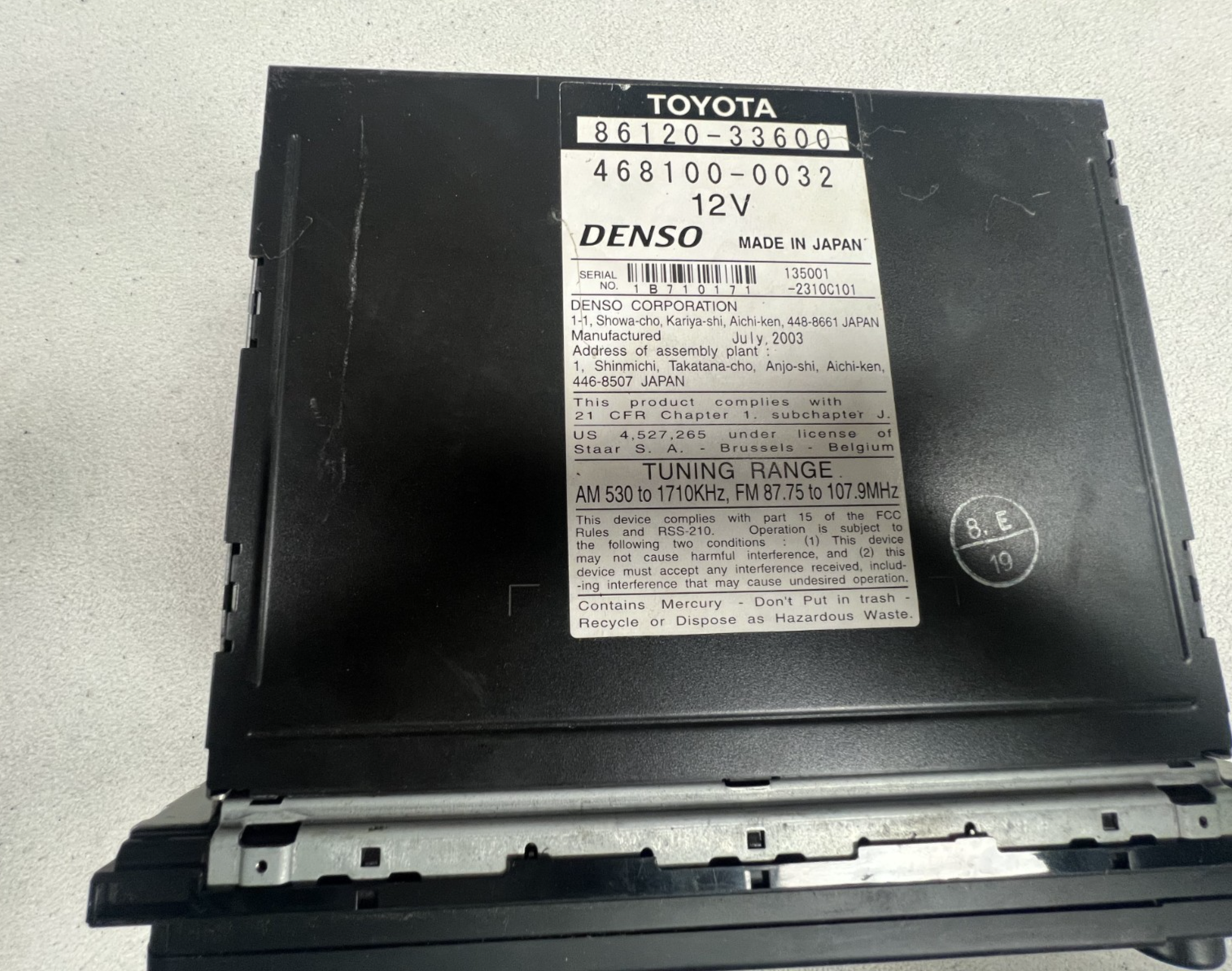 02-06 Toyota Camry Voice Navigation GPS AM FM Radio Stereo Receiver 86120 33600
