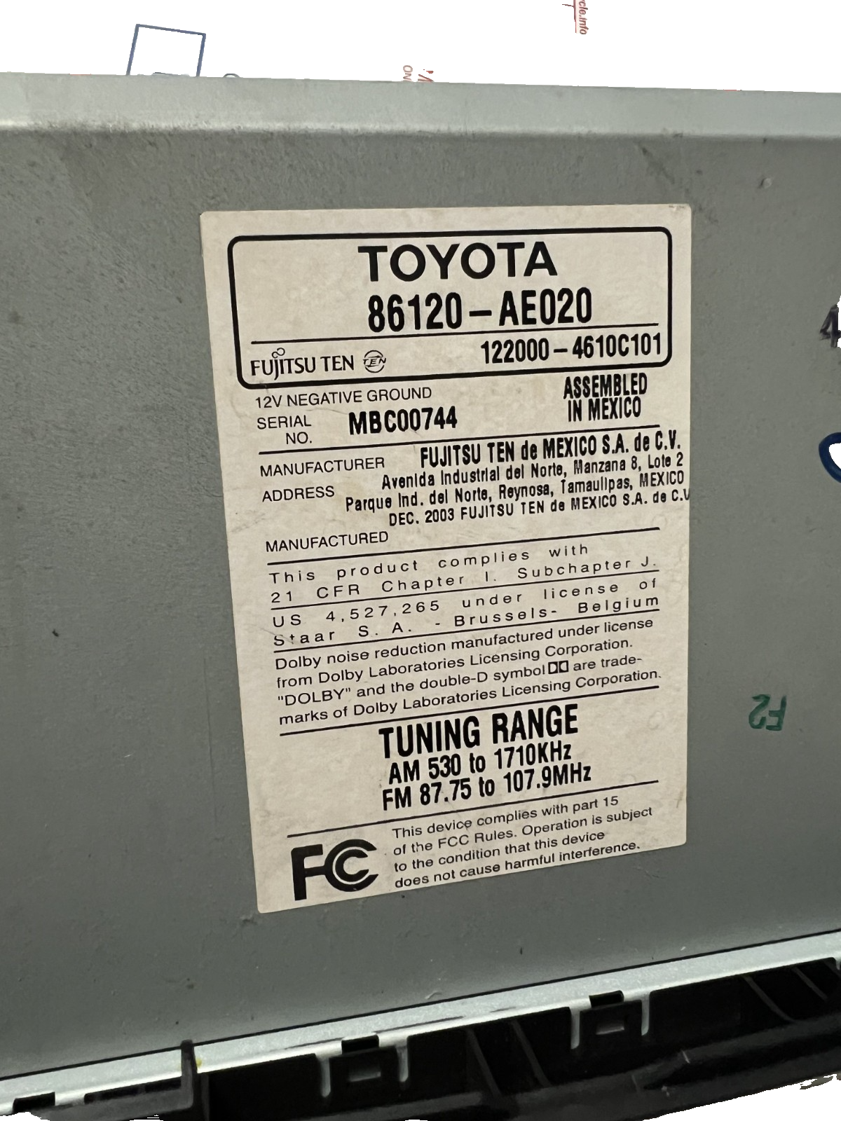 04 05 06 07 08 09 10 Toyota Sienna Radio Tape CD Disc Player 86120 AE0